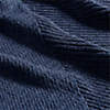 A trio of knitting stitches unite in a throw blanket with a wealth of texture and coziness. Durable, heathered yarn in two shades of deep blue creates an organic look with depth. Evoking the cuffs of a favorite sweater, the wide-ribbed border finishes the throw with a graphic striped pattern. Drape our exclusive dark blue sweater knit throw blanket over the arm of a sofa or the foot of the bed so indulgent warmth and comfort is always right at hand.