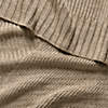 A trio of knitting stitches unite in a throw blanket with a wealth of texture and coziness. Durable, heathered yarn in two shades of olive green creates an organic look with depth. Evoking the cuffs of a favorite sweater, the wide-ribbed border finishes the throw with a graphic striped pattern. Drape our exclusive green sweater knit throw blanket over the arm of a sofa or the foot of the bed so indulgent warmth and comfort is always right at hand.