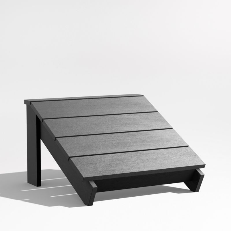 Designed to partner with our Japanese-inspired Takagi outdoor chair, the ottoman lines up perfectly with the chair's seat as a welcome place to rest your feet. Riffing on the classic Adirondack style, the black all-weather ottoman showcases a dramatically angled, paneled design. Wire-brushed texture lends a touch of rustic charm, the perfect complement to its clean, contemporary look.