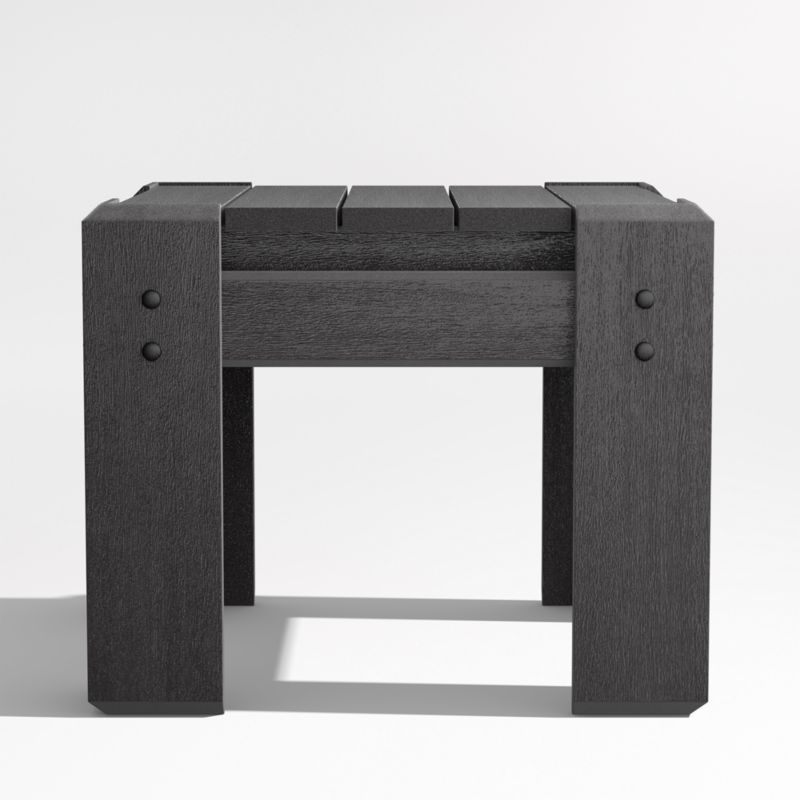 Japanese-inspired craftmanship meets contemporary comfort and style in our Takagi outdoor collection. Made of broad panels of black, all-weather plastic, the side table showcases a paneled top, recessed apron and chamfered detailing on the legs that—along with the wire-brushed texture—give it rustic charm. Pair the side table with the Takagi chair and ottoman for a clean, contemporary approach to outdoor lounging.