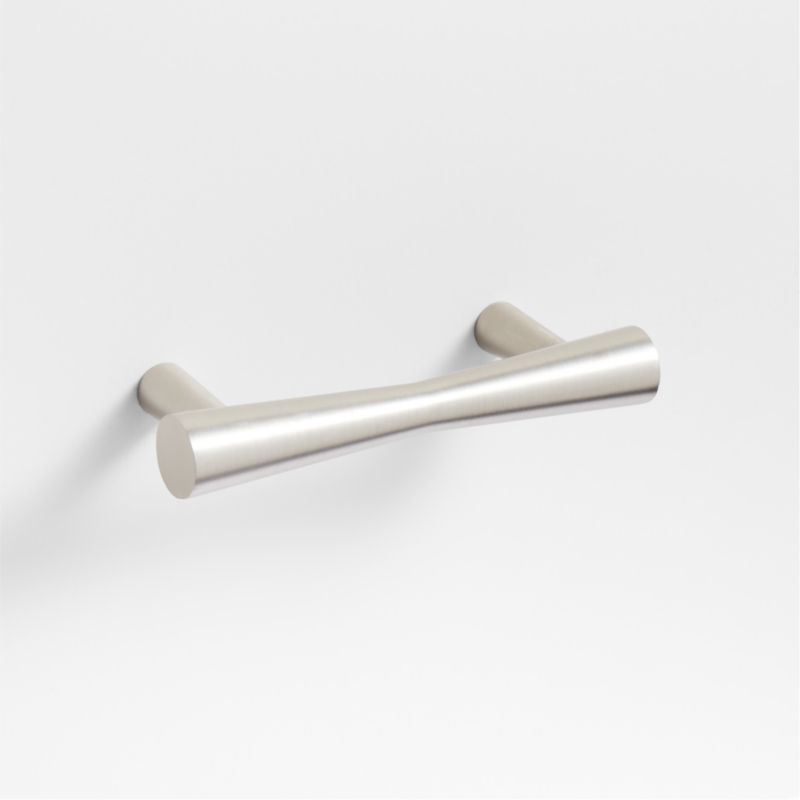 Sometimes it's the small things that pull a room together. That's why we've designed a hardware collection with modern silhouettes, clean lines and a touch of tradition to give your kitchen and bathroom cabinets that perfect finishing touch. Made of brass with a brushed nickel finish, the stylish bar pull gently tapers into a super-subtle hourglass shape. Minimalist cylinder posts elevate the pull for a comfortable handhold. The three-inch pull is easily installed on cabinet doors and dresser drawers with included hardware.