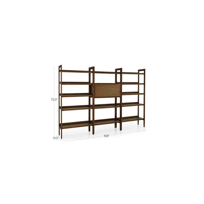 Tate 108" Walnut Bookcase Bar Cabinet with 2 Wide Bookshelves