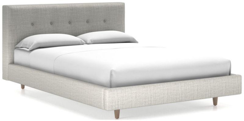 Our 1960s-inspired Tate collection recalls the timelessness of mid-century design with tailored profiles and streamlined shapes. The bed's textural fabric is punctuated with retro button-tufting on the headboard, which is fully upholstered front and back to give you more flexibility in positioning the bed. Streamlined, low platform design takes a minimal stance with dark brown tapered legs.