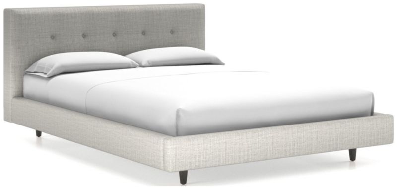 Our 1960s-inspired Tate collection recalls the timelessness of mid-century design with tailored profiles and streamlined shapes. The bed's textural fabric is punctuated with retro button-tufting on the headboard, which is fully upholstered front and back to give you more flexibility in positioning the bed. Streamlined, low platform design takes a minimal stance with dark brown tapered legs.