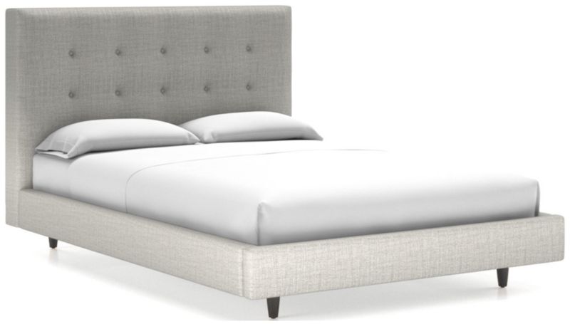 Our 1960s-inspired Tate collection recalls the timelessness of mid-century design with tailored profiles and streamlined shapes. Offered with a taller headboard, the bed's textural upholstery is punctuated with three rows of retro button-tufting. Streamlined, low platform design takes a minimal stance with dark brown tapered legs.