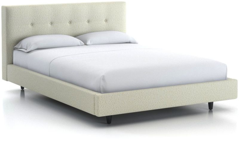Our 1960s-inspired Tate collection recalls the timelessness of mid-century design with tailored profiles and streamlined shapes. The bed's textural fabric is punctuated with retro button-tufting on the headboard, which is fully upholstered front and back to give you more flexibility in positioning the bed. Streamlined, low platform design takes a minimal stance with dark brown tapered legs.