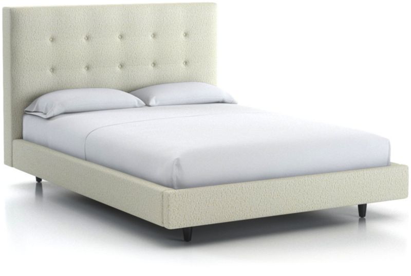 Streamlined, low platform design takes a minimal stance with dark brown tapered legs. The Tate Tall Full Bed is a Crate and Barrel exclusive.