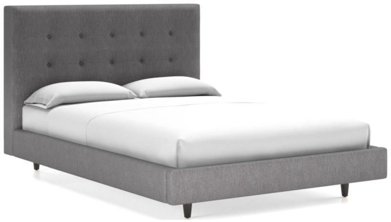 Streamlined, low platform design takes a minimal stance with dark brown tapered legs. The Tate Tall Full Bed is a Crate and Barrel exclusive.