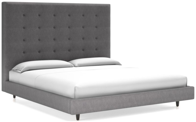Streamlined, low platform design takes a minimal stance with dark brown tapered legs. The Tate Taller Bed is a Crate and Barrel exclusive.