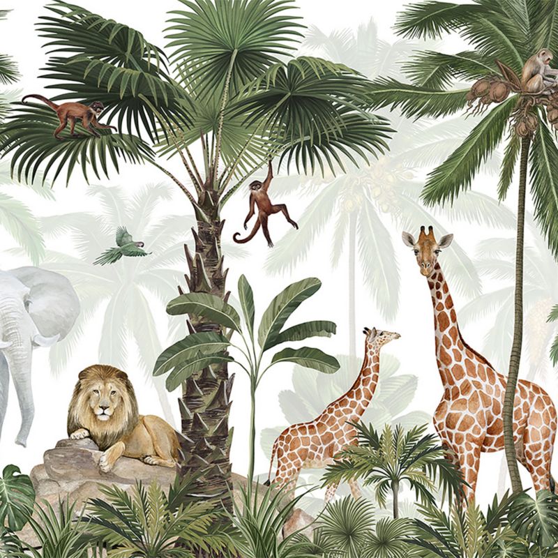 This wall mural turns a child's space into an epic jungle safari. The immersive tropical scene of lions, giraffes and monkeys has all the lifelike, painterly beauty of a handmade mural, but goes up in a cinch, thanks to a simple peel-and-stick application. Made of durable, easy-to-clean vinyl at a size that's suited for bedrooms, playrooms or even bathrooms, it will spark the imagination of any young animal lover for years.