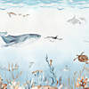 This wall mural brings an ocean of wonder to a child's space. The tranquil underwater scene of lifelike whales, dolphins and turtles swimming in a coral reef has all the painterly beauty of a handmade mural, but goes up in a cinch, thanks to a simple peel-and-stick application. Made of durable, easy-to-clean vinyl at a size that's suited for bedrooms, playrooms or even bathrooms, it will foster big dreams for years.