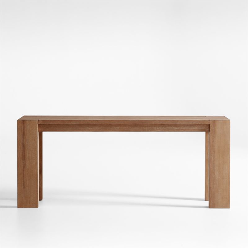 Crafted of solid white oak with a subtle smoke finish applied by hand, our Terra console table celebrates the rustic beauty of wood. The table strikes a simple Parsons-style silhouette with traditional woodworking on display in the recessed apron and square table legs that intersect the top to provide a glimpse of end grain on each corner. Each piece of wood tells its own story revealed in unique tonal variations, knots and checking that occur naturally over time. We love the way these organic characteristics contribute to Terra's rustic authenticity and farmhouse appeal.