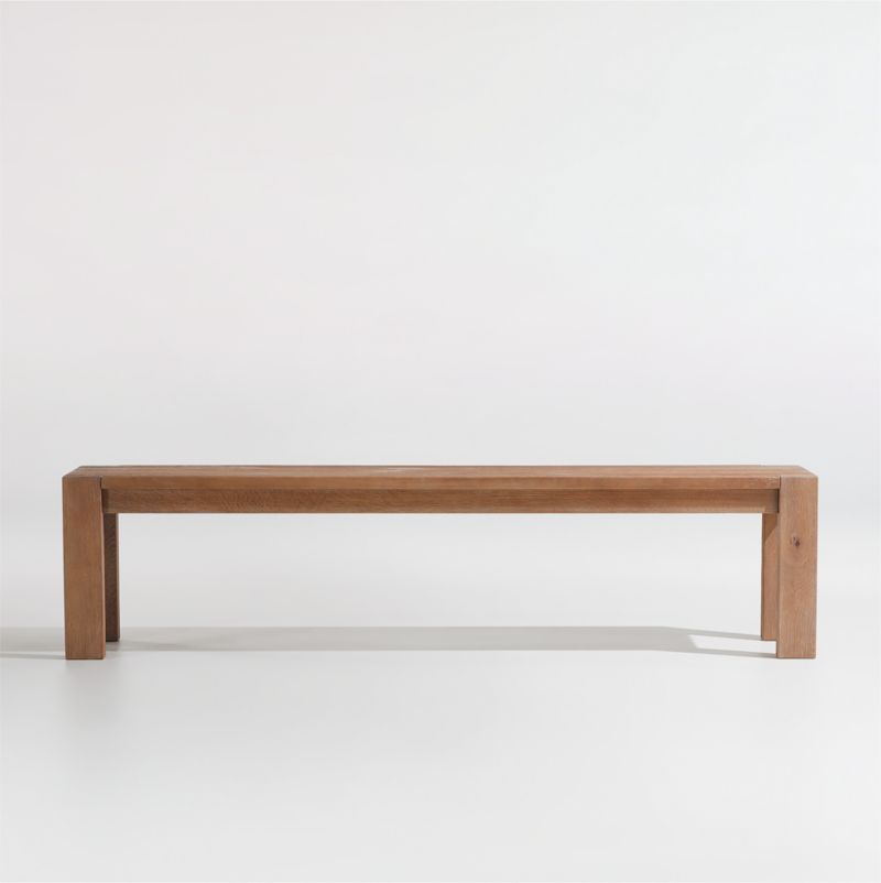 There's room for everyone at your table with the Terra dining bench. Crafted of solid white oak with a subtly smoked finish applied by hand, the bench celebrates the rustic beauty of wood. The legs intersect the slab seat, showcasing the end grain for textural interest. Each piece of wood tells its own story revealed in unique tonal variations, knots and checking that occur naturally over time. We love the way these organic characteristics contribute to Terra's rustic authenticity and farmhouse appeal.