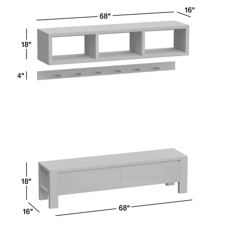 | | Set: Storage Bench, Wall-Mounted Storage and Wall Hooks |