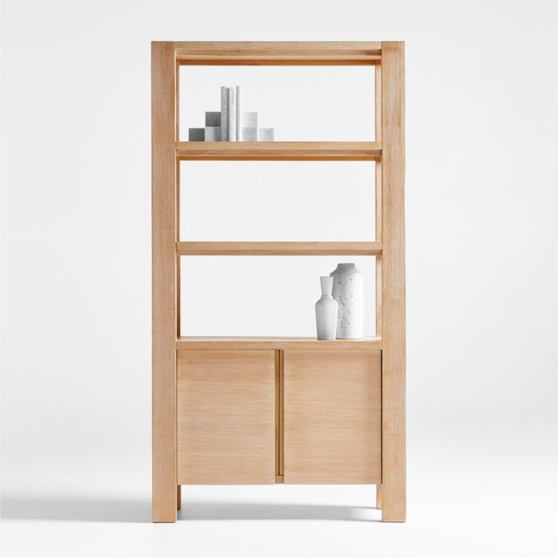 Crafted of solid white oak with a natural finish applied by hand, our Terra bookcase celebrates the rustic beauty of wood. Traditional woodworking is on display in the recessed panels, channel-detailed shelves and square table legs that rise to the bookcase's top. Flat-front doors open to one adjustable shelf for out-of-sight storage, while two open shelves showcase books and picture frames. Each piece of wood tells its own story revealed in unique tonal variations, knots and checking that occur naturally over time. We love the way these organic characteristics contribute to Terra's rustic authenticity and farmhouse appeal.