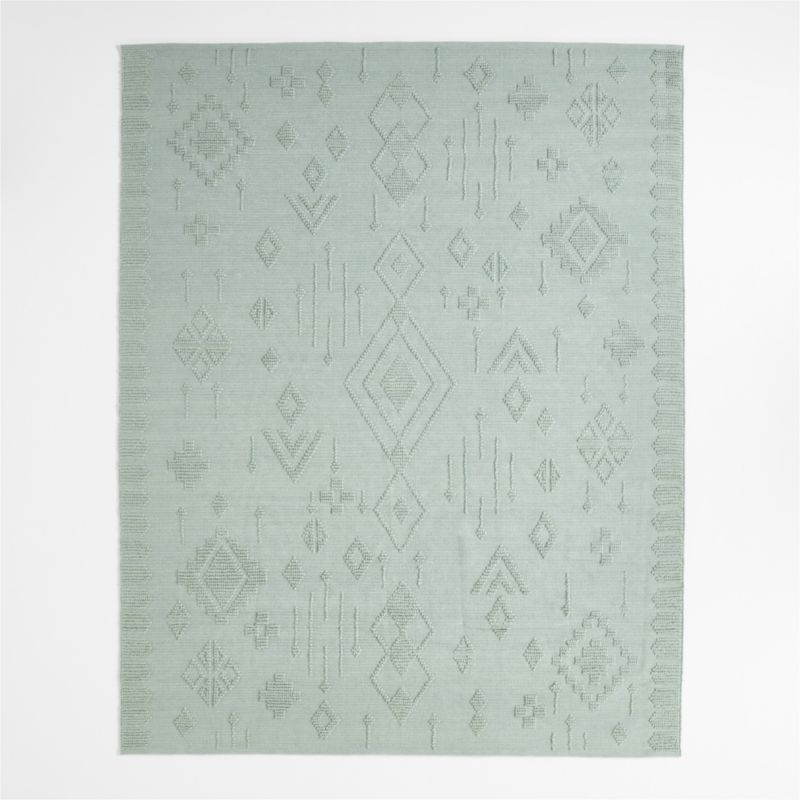 Make a graphic statement in your kid's favorite spaces with this striking rug in a handwoven, texture-rich geometric design. Raised tone-on-tone patterns in contrasting weaves give this rug beautiful dimension and depth. In an earthy green hue, the rug's wool-cotton blend is highly durable and more resistant to stains than other materials, making it a natural fit for the most active, well-loved spaces in your home?from the playroom to the nursery and beyond.