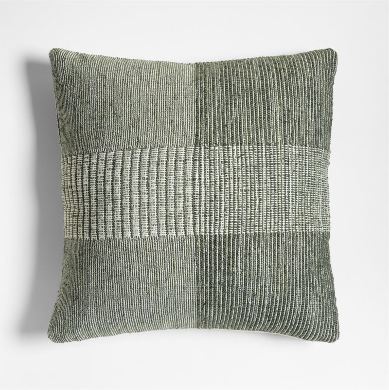 A variety of weaves create textured, tonal stripes on this effortlessly chic pillow. Recycled fibers in green and ivory weave the elevated design, banded by a central ribbed stripe. Durable enough for your porch and patio with living room-worthy style, our square pillow instantly refreshes your furniture indoors and out.