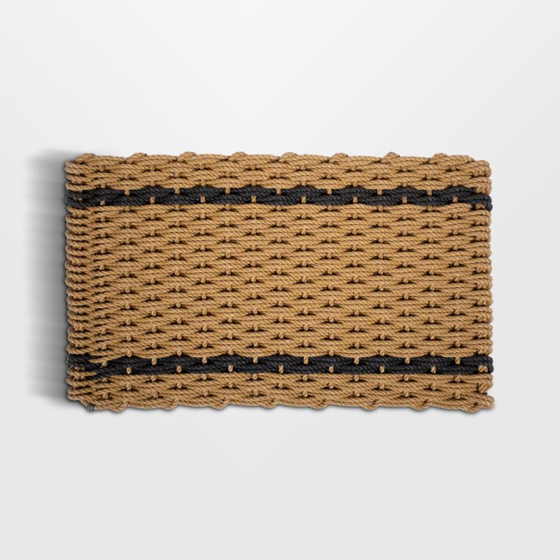 Handwoven out of handmade rope in Maine, this offset striped doormat weathers all seasons and conditions. The mat brings home the durability of rugged, fishing-grade nautical rope to your front door. Crafted with a chunky basketweave with two charcoal stripes, the doormat looks classic and sophisticated yet offers exceptional performance by effectively removing dirt from muddy shoes, repelling water and resisting mold and mildew.