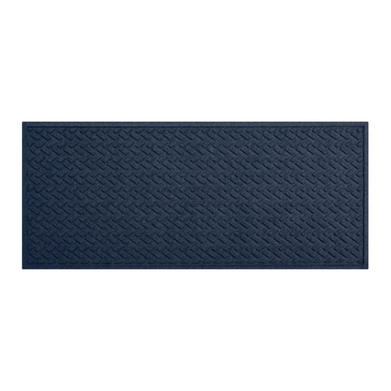 This absorbent "thirsty" mat in a great shade of blue lives up to its name, indoors or out. Unique construction wicks away moisture, trapping it in the pile for quick evaporation before floors, doorways or mudrooms get slick and dirty. Featuring a fun carved dash design, this long-lasting mat is finished with secure, non-skid rubber backing, keeps a low profile under opening and closing doors, and won't fade, crack, mold or mildew.