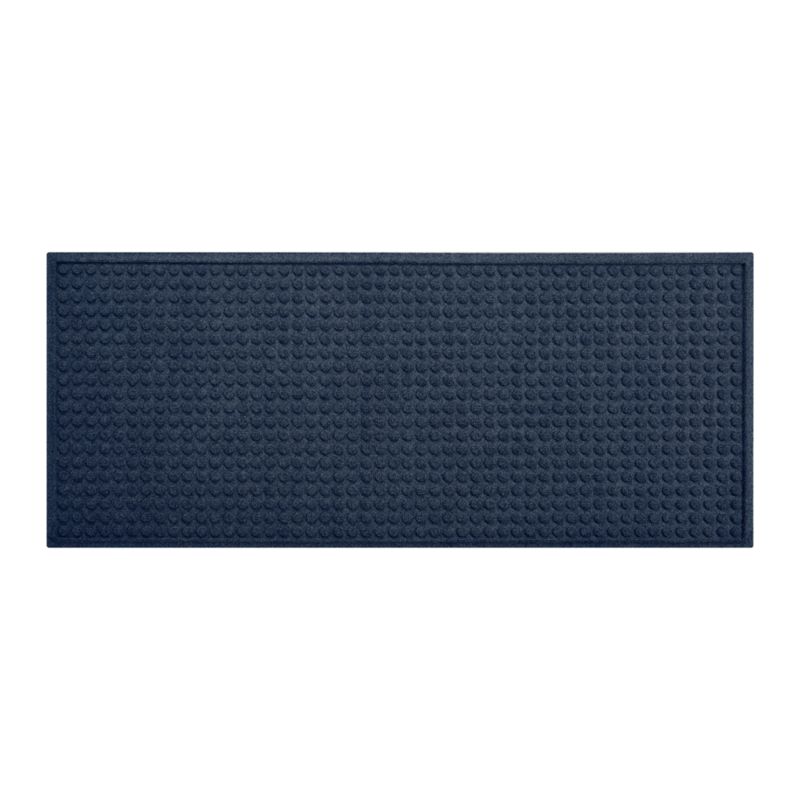 This absorbent "thirsty" mat in a great shade of blue lives up to its name, indoors or out. Unique construction wicks away moisture, trapping it in the pile for quick evaporation before floors, doorways or mudrooms get slick and dirty. Featuring a fun carved dot design, this long-lasting mat is finished with secure, non-skid rubber backing, keeps a low profile under opening and closing doors, and won't fade, crack, mold or mildew.