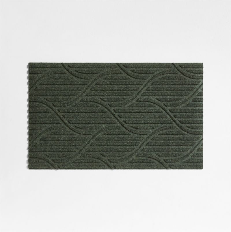 Add an attractive and practical welcome to your home with this graphic doormat. Featuring a dimensional and dynamic design of curves flowing through stripes, the monochromatic olive green mat is finished with rubber backing and keeps a low profile under opening and closing doors. The Flow doormat stands up to high traffic indoors and out, resisting staining and slipping.