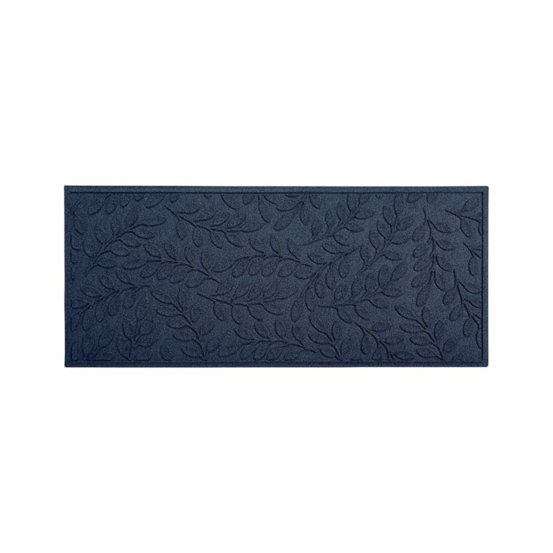 This absorbent "thirsty" mat in a great shade of blue lives up to its name, indoors or out. Unique construction wicks away moisture, trapping it in the pile for quick evaporation before floors, doorways or mudrooms get slick and dirty. Featuring a fun carved leaf design, this long-lasting mat is finished with secure, non-skid rubber backing, keeps a low profile under opening and closing doors, and won't fade, crack, mold or mildew.