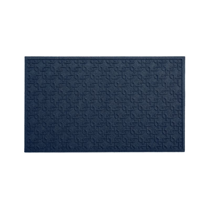 This absorbent "thirsty" mat in a great shade of blue lives up to its name, indoors or out. Unique construction wicks away moisture, trapping it in the pile for quick evaporation before floors, doorways or mudrooms get slick and dirty. Featuring a fun carved link design, this long-lasting mat is finished with secure, non-skid rubber backing, keeps a low profile under opening and closing doors, and won't fade, crack, mold or mildew.
