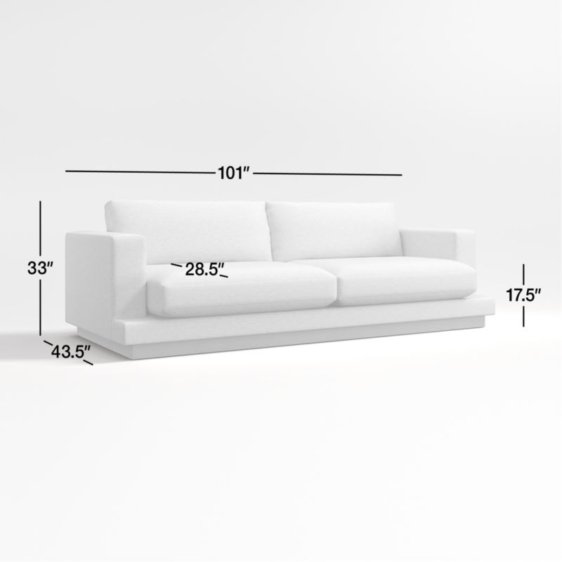 While you sink into the laid-back comfort of Tidal, enjoy the feel-good vibes of knowing that the sofa's upholstery includes yarn made from recycled ocean plastic. The durable, easy-care fabric indulges with a soft micro-chenille weave that perfectly complements the sofa's deeply cushioned seat and pillow backs that provide just the right amount of recline. Set-back arms and an exposed seat deck give the grand-sized sofa a stepped look, and the ash veneer plinth base lets it float in a room. Though Tidal's stocked upholstery contains a percentage of upcycled ocean plastic, it has a very soft and inviting hand that begs to be touched.