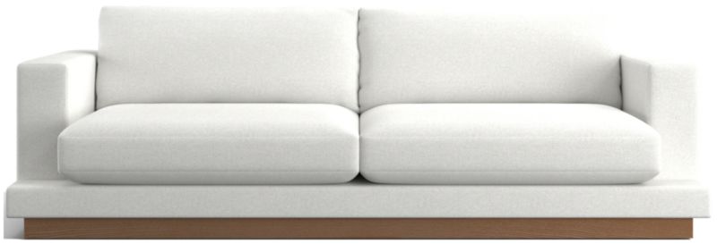 While you sink into the laid-back comfort of Tidal, enjoy the feel-good vibes of knowing that the sofa's upholstery includes yarn made from recycled ocean plastic. The durable, easy-care fabric indulges with a soft micro-chenille weave that perfectly complements the sofa's deeply cushioned seat and pillow backs that provide just the right amount of recline. Set-back arms and an exposed seat deck give the grand-sized sofa a stepped look, and the ash veneer plinth base lets it float in a room. Though Tidal's stocked upholstery contains a percentage of upcycled ocean plastic, it has a very soft and inviting hand that begs to be touched.