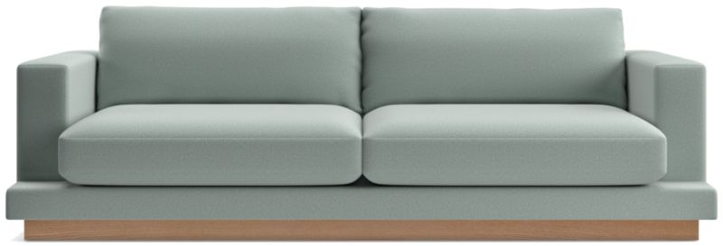 While you sink into the laid-back comfort of Tidal, enjoy the feel-good vibes of knowing that the sofa's upholstery includes yarn made from recycled ocean plastic. The durable, easy-care fabric indulges with a soft micro-chenille weave that perfectly complements the sofa's deeply cushioned seat and pillow backs that provide just the right amount of recline. Set-back arms and an exposed seat deck give the grand-sized sofa a stepped look, and the ash veneer plinth base lets it float in a room. Though Tidal's stocked upholstery contains a percentage of upcycled ocean plastic, it has a very soft and inviting hand that begs to be touched.