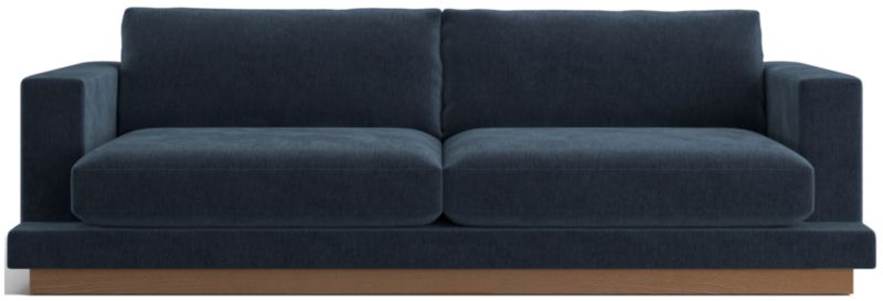While you sink into the laid-back comfort of Tidal, enjoy the feel-good vibes of knowing that the sofa's upholstery includes yarn made from recycled ocean plastic. The durable, easy-care fabric indulges with a soft micro-chenille weave that perfectly complements the sofa's deeply cushioned seat and pillow backs that provide just the right amount of recline. Set-back arms and an exposed seat deck give the grand-sized sofa a stepped look, and the ash veneer plinth base lets it float in a room. Though Tidal's stocked upholstery contains a percentage of upcycled ocean plastic, it has a very soft and inviting hand that begs to be touched.