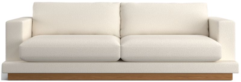 While you sink into the laid-back comfort of Tidal, enjoy the feel-good vibes of knowing that the sofa's upholstery includes yarn made from recycled ocean plastic. The durable, easy-care fabric indulges with a soft micro-chenille weave that perfectly complements the sofa's deeply cushioned seat and pillow backs that provide just the right amount of recline. Set-back arms and an exposed seat deck give the grand-sized sofa a stepped look, and the ash veneer plinth base lets it float in a room. Though Tidal's stocked upholstery contains a percentage of upcycled ocean plastic, it has a very soft and inviting hand that begs to be touched.