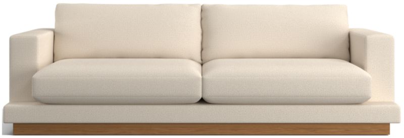 While you sink into the laid-back comfort of Tidal, enjoy the feel-good vibes of knowing that the sofa's upholstery includes yarn made from recycled ocean plastic. The durable, easy-care fabric indulges with a soft micro-chenille weave that perfectly complements the sofa's deeply cushioned seat and pillow backs that provide just the right amount of recline. Set-back arms and an exposed seat deck give the grand-sized sofa a stepped look, and the ash veneer plinth base lets it float in a room. Though Tidal's stocked upholstery contains a percentage of upcycled ocean plastic, it has a very soft and inviting hand that begs to be touched.