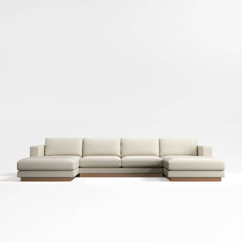 While you sink into the laid-back comfort of our Tidal sectional, enjoy the feel-good vibes of knowing that the sofa's upholstery includes yarn made from recycled ocean plastic. The durable, easy-care fabric indulges with a soft micro-chenille weave that perfectly complements the deeply cushioned seat and pillow backs that provide just the right amount of recline. Combining an armless sofa and left- and right-arm sofas, the three-piece sectional features set-back arms and exposed seat decks that create a stepped look with an ash veneer plinth base that lets the sofa float in a room. Though Tidal's stocked upholstery contains a percentage of upcycled ocean plastic, it has a very soft and inviting hand that begs to be touched.