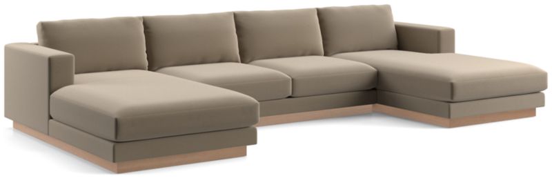 While you sink into the laid-back comfort of our Tidal sectional, enjoy the feel-good vibes of knowing that the sofa's upholstery includes yarn made from recycled ocean plastic. The durable, easy-care fabric indulges with a soft micro-chenille weave that perfectly complements the deeply cushioned seat and pillow backs that provide just the right amount of recline. Combining an armless sofa and left- and right-arm sofas, the three-piece sectional features set-back arms and exposed seat decks that create a stepped look with an ash veneer plinth base that lets the sofa float in a room. Though Tidal's stocked upholstery contains a percentage of upcycled ocean plastic, it has a very soft and inviting hand that begs to be touched.