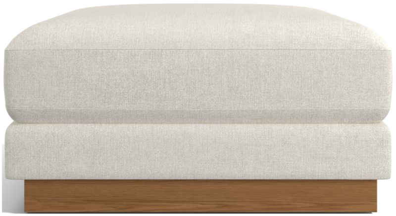 Designed to coordinate with our Tidal sofa collection, the ottoman shares the same feel-good vibes of upholstery that incorporates yarn made from recycled ocean plastic. The durable, easy-care fabric indulges with a soft micro-chenille weave that perfectly complements the deeply cushioned seat. An exposed seat deck gives the ottoman a stepped look, with an ash veneer plinth base that lets it float in a room. Though Tidal's stocked upholstery contains a percentage of upcycled ocean plastic, it has a very soft and inviting hand that begs to be touched.