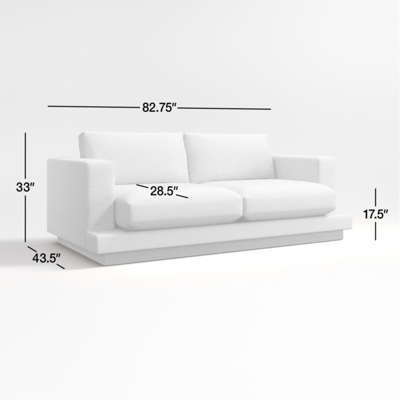 While you sink into the laid-back comfort of Tidal, enjoy the feel-good vibes of knowing that the sofa's upholstery includes yarn made from recycled ocean plastic. The durable, easy-care fabric indulges with a soft micro-chenille weave that perfectly complements the apartment sofa's deeply cushioned seat and pillow backs that provide just the right amount of recline. Set-back arms and an exposed seat deck create a stepped look, and the ash veneer plinth base lets the sofa float in a room. Though Tidal's stocked upholstery contains a percentage of upcycled ocean plastic, it has a very soft and inviting hand that begs to be touched.