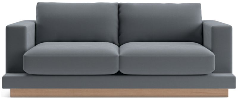 While you sink into the laid-back comfort of Tidal, enjoy the feel-good vibes of knowing that the sofa's upholstery includes yarn made from recycled ocean plastic. The durable, easy-care fabric indulges with a soft micro-chenille weave that perfectly complements the apartment sofa's deeply cushioned seat and pillow backs that provide just the right amount of recline. Set-back arms and an exposed seat deck create a stepped look, and the ash veneer plinth base lets the sofa float in a room. Though Tidal's stocked upholstery contains a percentage of upcycled ocean plastic, it has a very soft and inviting hand that begs to be touched.