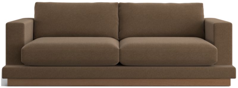 While you sink into the laid-back comfort of Tidal, enjoy the feel-good vibes of knowing that the sofa's upholstery includes yarn made from recycled ocean plastic. The durable, easy-care fabric indulges with a soft micro-chenille weave that perfectly complements the sofa's deeply cushioned seat and pillow backs that provide just the right amount of recline. Set-back arms and an exposed seat deck create a stepped look, and the ash veneer plinth base lets the sofa float in a room. Though Tidal's stocked upholstery contains a percentage of upcycled ocean plastic, it has a very soft and inviting hand that begs to be touched.