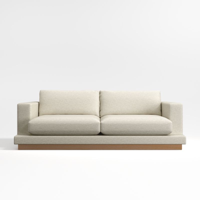 While you sink into the laid-back comfort of Tidal, enjoy the feel-good vibes of knowing that the sofa's upholstery includes yarn made from recycled ocean plastic. The durable, easy-care fabric indulges with a soft micro-chenille weave that perfectly complements the sofa's deeply cushioned seat and pillow backs that provide just the right amount of recline. Set-back arms and an exposed seat deck create a stepped look, and the ash veneer plinth base lets the sofa float in a room. Though Tidal's stocked upholstery contains a percentage of upcycled ocean plastic, it has a very soft and inviting hand that begs to be touched.