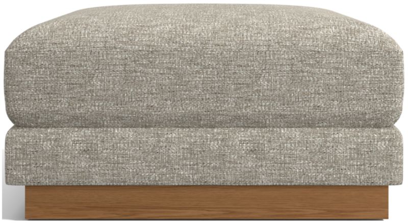 Designed to coordinate with our Tidal sofa collection, the ottoman shares the same feel-good vibes of upholstery that incorporates yarn made from recycled ocean plastic. The durable, easy-care fabric indulges with a soft micro-chenille weave that perfectly complements the deeply cushioned seat. An exposed seat deck gives the ottoman a stepped look, with an ash veneer plinth base that lets it float in a room. Though Tidal's stocked upholstery contains a percentage of upcycled ocean plastic, it has a very soft and inviting hand that begs to be touched.