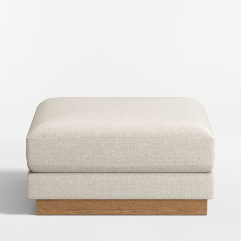 Designed to coordinate with our Tidal sofa collection, the ottoman shares the same feel-good vibes of upholstery that incorporates yarn made from recycled ocean plastic. The durable, easy-care fabric indulges with a soft micro-chenille weave that perfectly complements the deeply cushioned seat. An exposed seat deck gives the ottoman a stepped look, with an ash veneer plinth base that lets it float in a room. Though Tidal's stocked upholstery contains a percentage of upcycled ocean plastic, it has a very soft and inviting hand that begs to be touched.