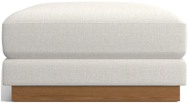 Designed to coordinate with our Tidal sofa collection, the ottoman shares the same feel-good vibes of upholstery that incorporates yarn made from recycled ocean plastic. The durable, easy-care fabric indulges with a soft micro-chenille weave that perfectly complements the deeply cushioned seat. An exposed seat deck gives the ottoman a stepped look, with an ash veneer plinth base that lets it float in a room. Though Tidal's stocked upholstery contains a percentage of upcycled ocean plastic, it has a very soft and inviting hand that begs to be touched.