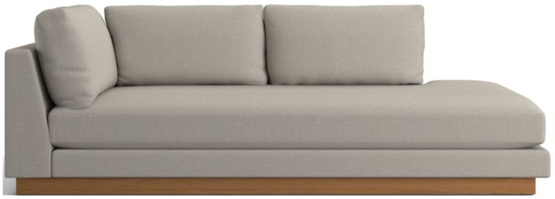While you sink into the laid-back comfort of Tidal, enjoy the feel-good vibes of knowing that the sectional collection's upholstery incorporates yarn made from recycled ocean plastic. The durable, easy-care fabric indulges with a soft micro-chenille weave that perfectly complements the deeply cushioned seat and pillow backs that provide just the right amount of recline. Each sectional component has an exposed seat deck that creates a stepped look, with an ash veneer plinth base that lets it float in a room. Though Tidal's stocked upholstery contains a percentage of upcycled ocean plastic, it has a very soft and inviting hand that begs to be touched.