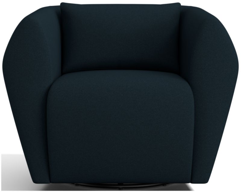 Tight tailoring brings Tierra's angular details into focus in this sophisticated update to the swivel chair. Fully upholstered in a chenille with velvety texture, the chair flares and tapers armrests that flow into an embracing barrel back. The squared off, chamfered back makes the most of the chair's swivel, creating an intriguing view from any viewpoint. The gentle taper of the interior arms and back cradle a soft-yet-supportive seat and a loose back cushion filled with a luxurious feather-down blend.