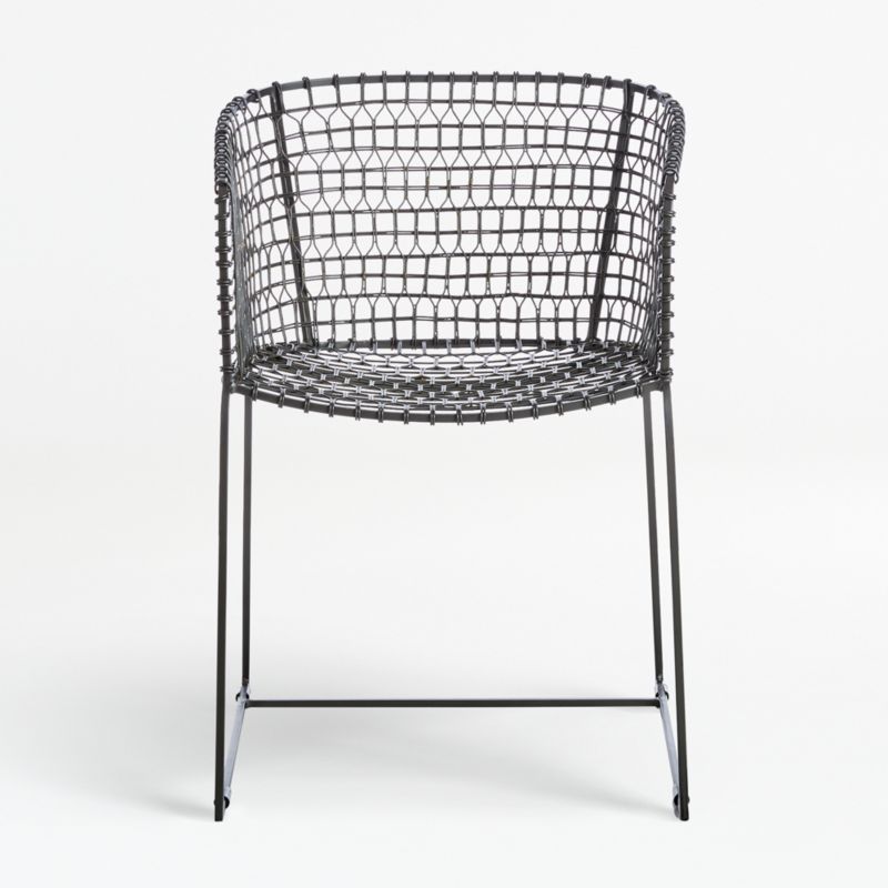 To master this complicated technique, we relied on a team of highly skilled craftsmen who specialize in a kind of wire weaving that's been passed along from generation to generation. Entirely handcrafted, each chair is made in three stages—frame construction, wire patterning and final welding—by expert metalsmiths. Once finished, the chair is given a light acid wash bath yielding a grey iron patina and subtle brass weld marks. The Tig Barrel Dining Chair is a Crate and Barrel exclusive.