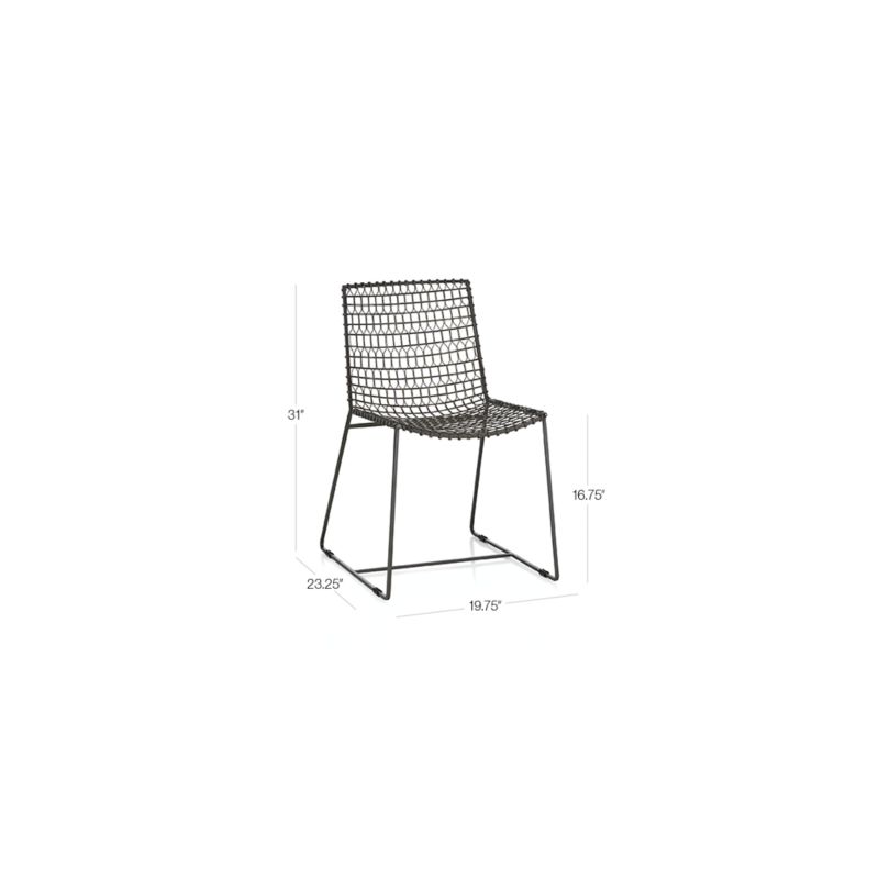 Fashioning this kind of weld is difficult, and we relied on a team of highly skilled craftsmen who specialize in a kind of wire weaving that's been passed along from generation to generation. Entirely handcrafted, each chair is made in three stages—frame construction, wire patterning and final welding—by expert metalsmiths. Once finished, the chair is given a light acid wash bath yielding a grey iron patina and subtle brass weld marks. The perfectly proportioned leather cushion adds soft cushioning and a natural counterpoint to Tig's intricately welded design. The Tig Barrel Dining Chair is a Crate and Barrel exclusive.