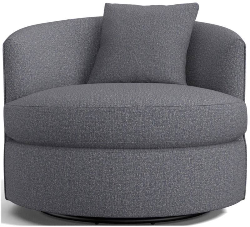 Round out your living room with the contemporary curves of Tillie. This inviting swivel chair beckons you to kick off your shoes and snuggle up in the round. The swivel base lets you follow the conversation or rotate for a new view. A tight barrel back completes the circle, while a soft throw pillow nestles a comfy seat. The Tillie Swivel Chair is a Crate and Barrel exclusive.