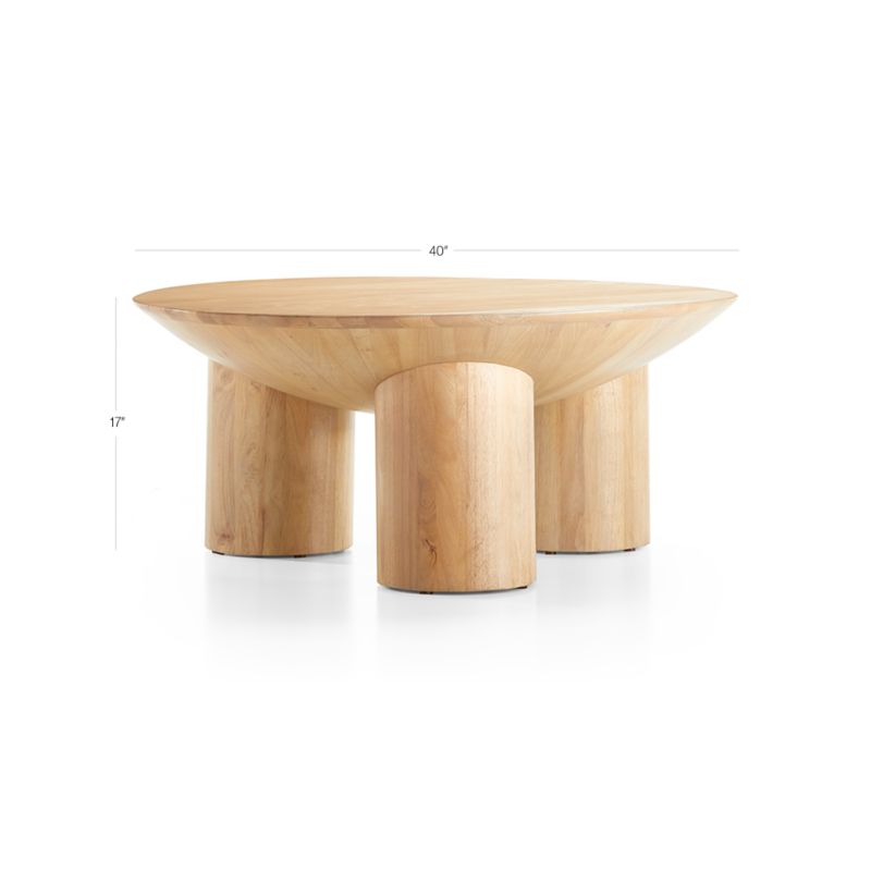 Our conversation-sparking Tom coffee table delights with unexpected proportions and playful geometry. Oversized cylinders stand in for slender table legs, supporting a top that looks like a slice of a giant sphere. Crafted with oak veneer, the coffee table has a natural finish that enlivens the sculptural silhouette with lively wood grain. We love the Tom table paired with the other bold shapes, fun textures and graphic lines found in our exclusive Leanne Ford-designed collection.