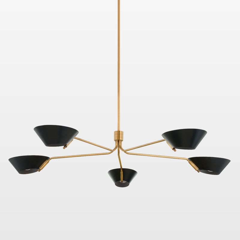 Tomar 5-Light Brass & Black Shade Chandelier Light